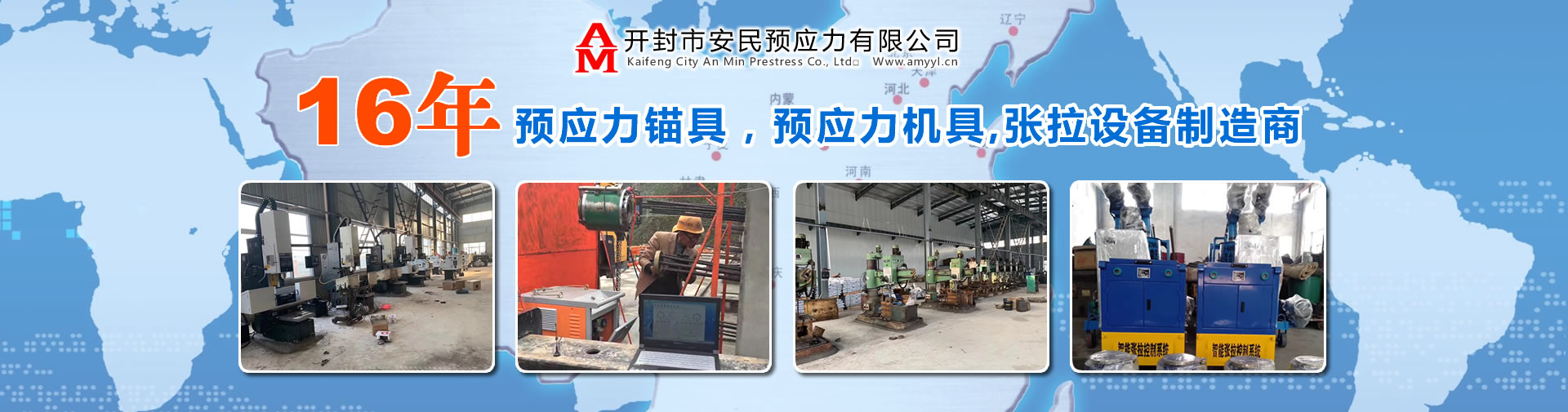 開封市安民預應力有限公司KAIFENG CITY ANMIN PRESTRESSED CO LTD. 開封市安民預應力有限公司是研制、生產、銷售各種預應力產品及預應力施工的專業(yè)廠家。公司主導產品為AM、BM系列錨具,鐓頭錨、弗氏錨、P型錨、精軋螺紋鋼錨具及配套各系列干 斤頂、高壓油泵、灰漿泵、攪拌機、制管機.智能張拉.智能壓漿等機具產品。公司產品已達到GB/14370-2007標準及國際預應力混凝土協會《FIP1993》標準。 公司設備**,技術力量雄厚。原材料從采購、生產、檢驗和服務的全過程中,均在國際標準質量體...